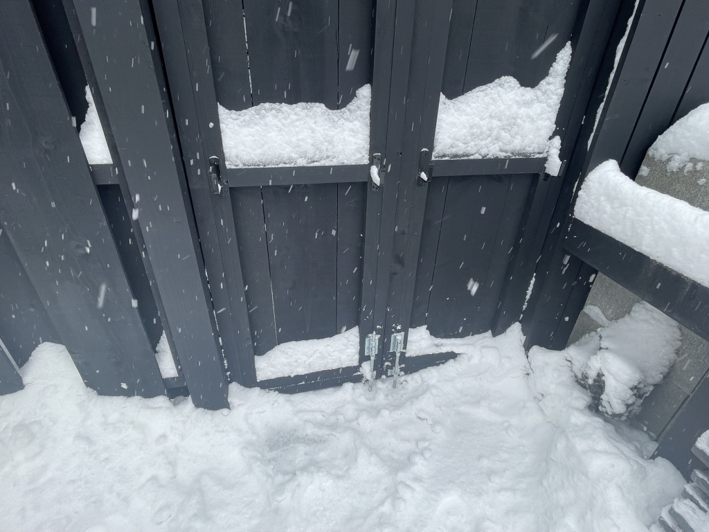 小屋に入る門が凍ってしまい開きません😱