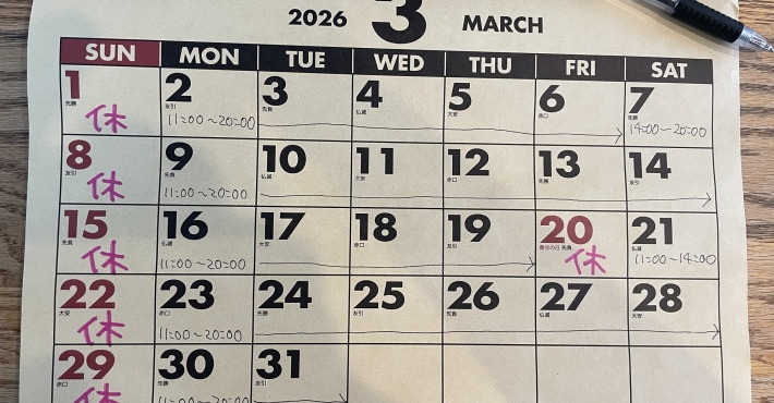 3月のお休み 2026年3月1日 ぶーさん3月のお休み日曜祝日です🇯🇵。土曜日ちょこちょこご予約頂いてますので土曜日をご希望される方はちょっとお早めにご予約して頂くと宜しいかと思います。花粉、空気汚染が気になる季節になってきました。今年は3倍位キツイらし...